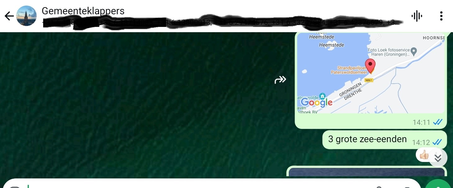 We uploaden onze waarneming van de Grote Zee-eenden naar waarneming.nl en ik geef de waarneming door via de appgroep ‘gemeenteklappers’. In deze app worden waarnemingen van schaarse en zeldzame vogels in en rondom de stad Groningen gedeeld. Even later zien we dat meerdere vogelaars een kijkje hebben genomen, toch leuk. Voor Siska betreft het nog een nieuwe soort. We vieren deze mooie waarneming met een hapje en drankje in het strandpaviljoen. Ik heb net een slok genomen van mijn warme chocomel als het geluid van een Dutch Bird Alert (Roodmus) het vele geroezemoes in het paviljoen overstemt. Het blijkt te gaan om een Kleine Canadese Gans, en dan de ondersoort Hutchins’ Canadese Gans. Een melding waar ik toch wel enthousiast van wordt, want dit zou nog een nieuwe soort voor mij zijn. De vogel is ontdekt op de akkers ten oosten van Stadskanaal. Hutchins’ Canadese Gans is een zeldzame dwaalgast in Europa, met in Nederland 9 gevallen.