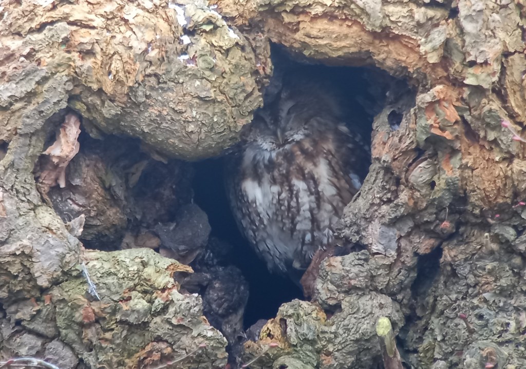 Na deze mooie waarneming keren we huiswaarts. Onderweg stoppen we nog even te Oranjewoud. Hier gaan we bij een Bosuil op bezoek. Ook deze vogel is vrij snel gevonden. De slapende uil zit in een hartvormige holte, in 1 van de vele oude bomen. Eigenlijk niet te missen. Al vele vogelaars en natuurliefhebbers gingen ons voor. Andere leuke soorten betreffen een zingende Goudvink, IJsvogel en Appelvinken. Weer een leuke vogeldag in het Friese land.