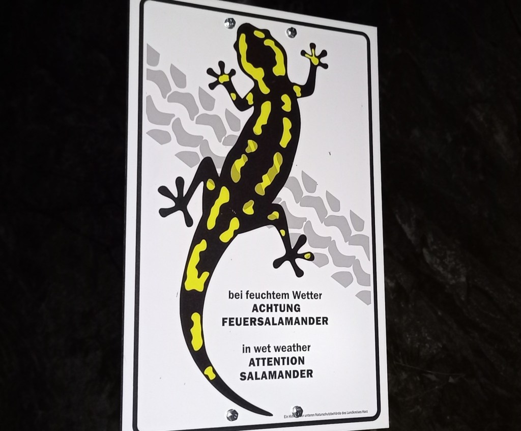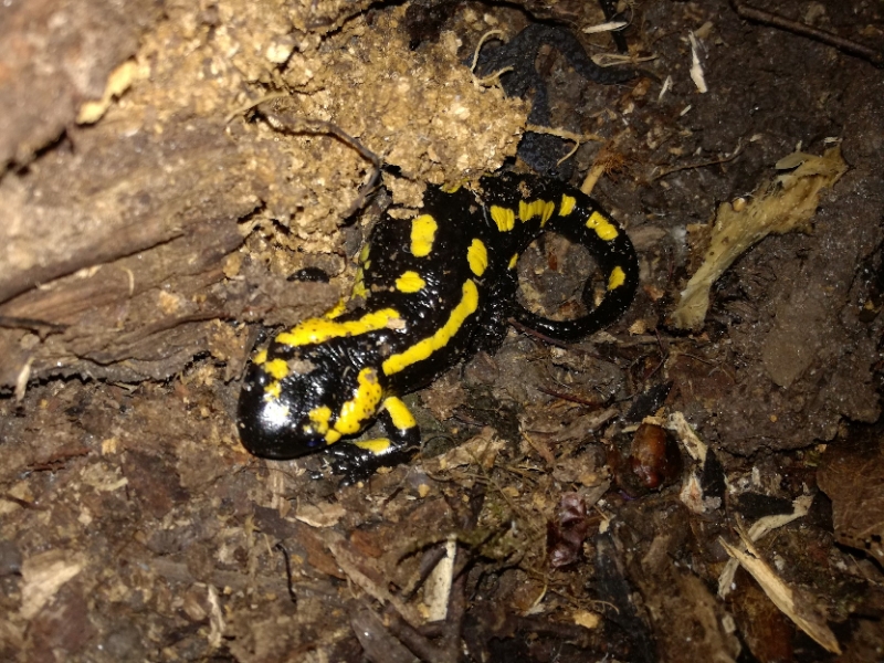 Het gebied doet me denken aan hellingbossen met beken zoals je die in Nederland alleen in Zuid-Limburg aantreft, en waar de Vuursalamander nog in kleine aantallen voorkomt. In dit prachtige hellingbos in De Harz komen ook Vuursalamanders voor. Ik heb, gezien de droogte van de bodem, toch wel wat twijfels of we dit weekend een exemplaar gaan zien. Bij droge omstandigheden zitten amfibieën dieper verscholen onder de grond, tussen rotsspleten, boomwortels etc. Daarnaast is het nog ietwat vroeg in het jaar voor de soort. Maar in theorie zou het kunnen dat we deze wonderschone landsalamander gaan zien, we zullen het ook bij deze soort van geluk moeten hebben. Hieronder 2 foto’s gemaakt in Zuid-Limburg.