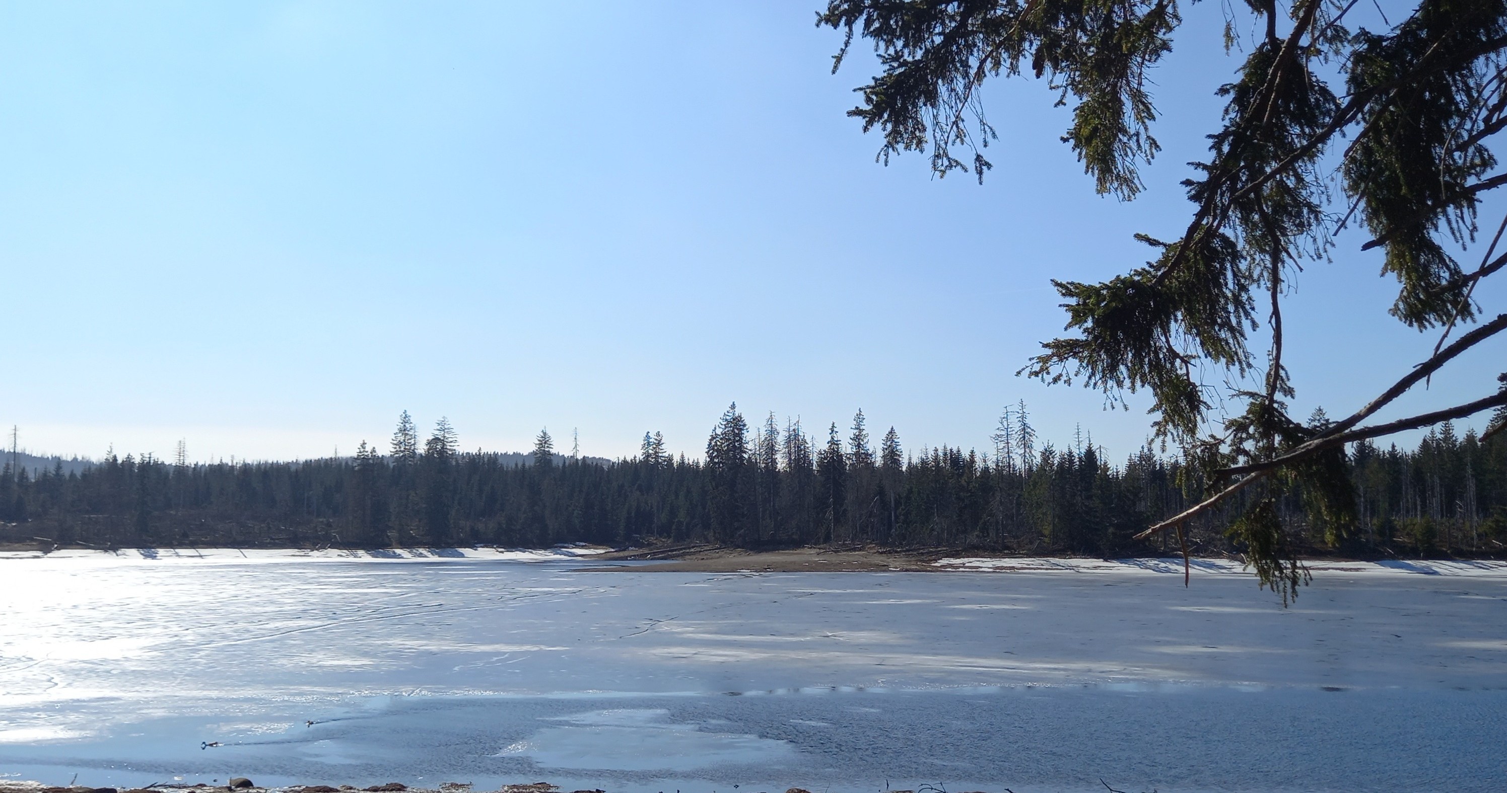 Bij Oderteich hebben we een goeie kans op Waterspreeuw, maar deze fraaie soort, perfect aangepast aan het leven in en rondom het water, laat zich hier niet zien. We nemen de tijd om het landschap in ons op te nemen, frisse lucht in te ademen. Een Levendbarende Hagedis ritselt snel weg tussen de dorre bladeren. Een aantal vogelsoorten zijn in hoge dichtheden aanwezig en fanatiek aan het zingen. Heggenmus, Zwarte Mees, Goudvink en her en der Kuifmees. Opvallend genoeg zien en horen we nog geen spechten.