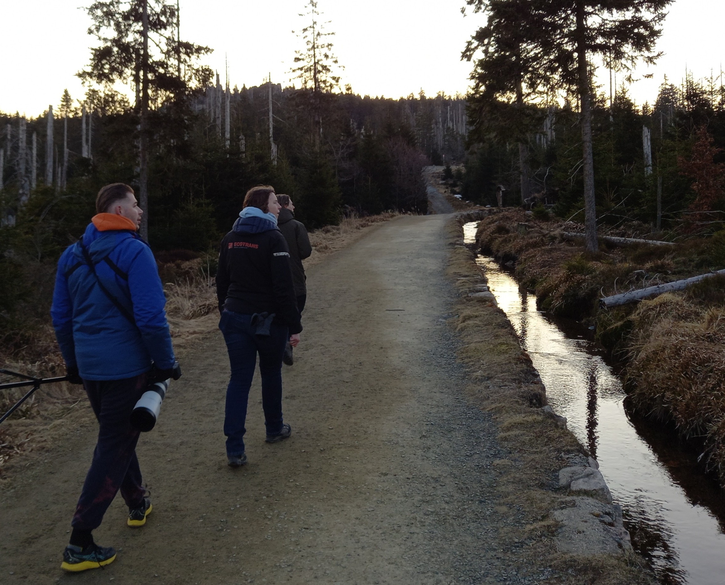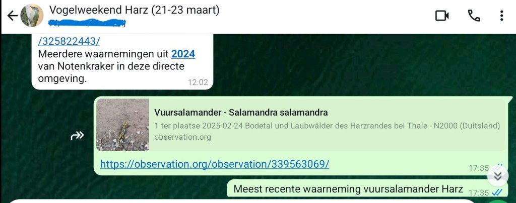 Prachtige soort, en ook deze liet zich veel makkelijker vinden dan we hadden verwacht. We hadden namelijk al het plan gemaakt om de zondagochtend naar een ander gebied te gaan, waar de kans groter leek op het vinden van deze spechtensoort. Hopelijk gaan we deze soort ooit nog eens in Nederland zien. In Nederland is het een dwaalgast met tot dusver slechts 7 waarnemingen. Vervolgens wandelen we door een schitterend beekdal, waar we ook weer genieten van een Waterspreeuw. In tegenstelling tot de vogels die we zagen in Schierke, blijkt deze nauwelijks schuw. Een Raaf vliegt over, Kortsnavelboomkruiper zingend. Een Vuursalamander vinden lukt vooralsnog niet. We hebben überhaupt nog geen amfibie gezien. Wie weet hebben we vanavond meer geluk, wanneer veel amfibieën uit hun schuilplaats komen. Ook verwachten we nog wel wat mee te krijgen van de amfibieëntrek, die in deze tijd van jaar volop bezig is. Gedurende dit fenomeen trekken amfibieën vanuit de overwinteringsplaatsen richting de voortplantingswateren.