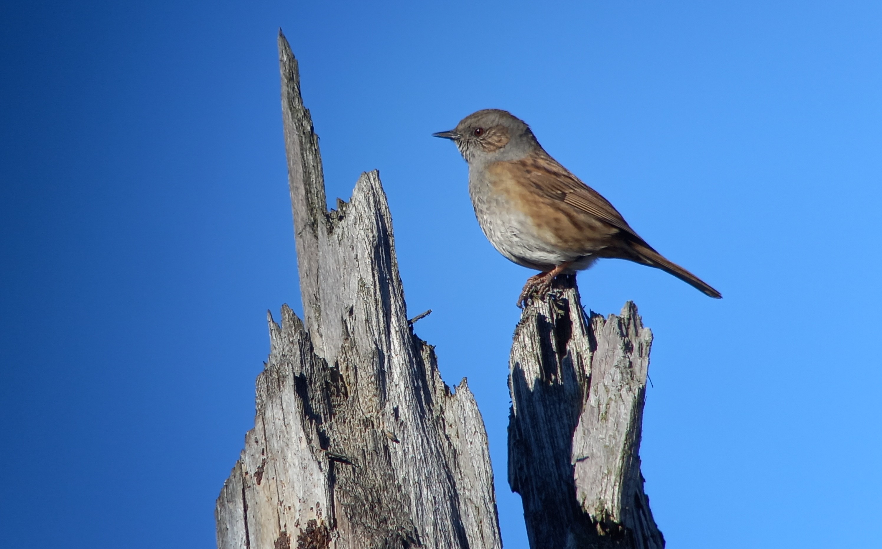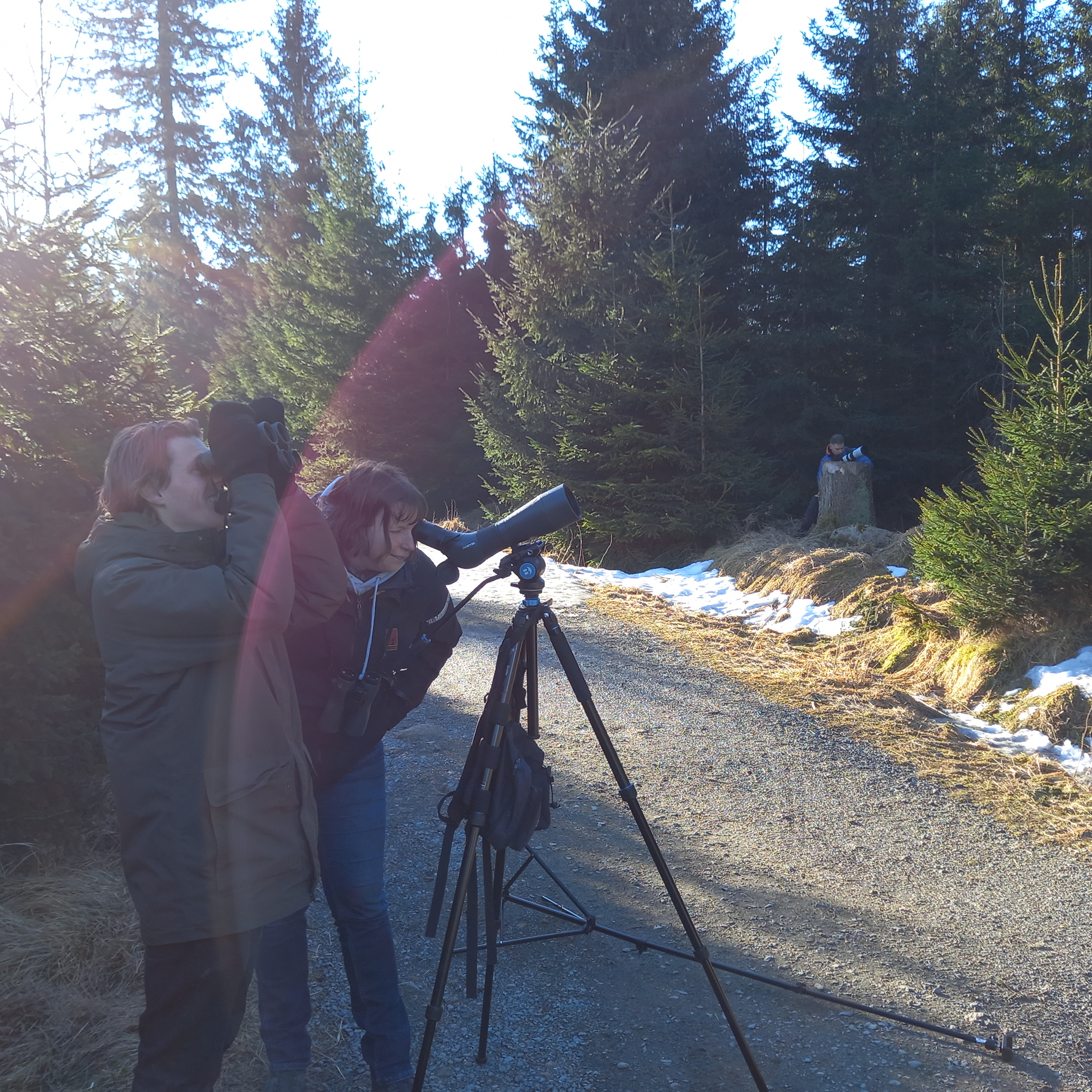 05:00 gaat de wekker en maken we ons op voor een vroege ochtendronde. We willen 06:00 arriveren op een locatie waar we hopelijk een Dwerguil gaan zien. Snel opfrissen, kop koffie, broodje en om 05:30 zijn we onderweg. 06:00 lopen we weer het bos in. Ook hier weer het typische bosbeeld, afstervende sparrenpercelen afgewisseld met kapvlaktes, her en der lijnvormige watertjes, beekjes. Een harde en kille wind waait door onze haren. Een Heggenmus maakt duidelijk zijn territorium kenbaar door in de top van een dode spar luidkeels te zingen. De kille wind lijkt geen invloed te hebben op de zangactiviteit van vogels. Kortsnavelboomkruipers, Zwarte Mezen, Kuifmezen, Koolmezen, Vinken, Putters, Goudvinken en Grote Bonte Spechten zingen en baltsen er op los. In het luchtruim groepjes wegtrekkende Koperwieken, Spreeuwen en Kepen.