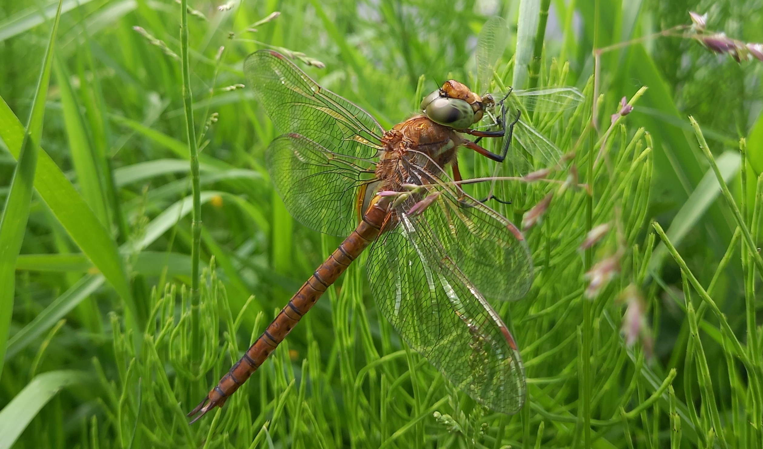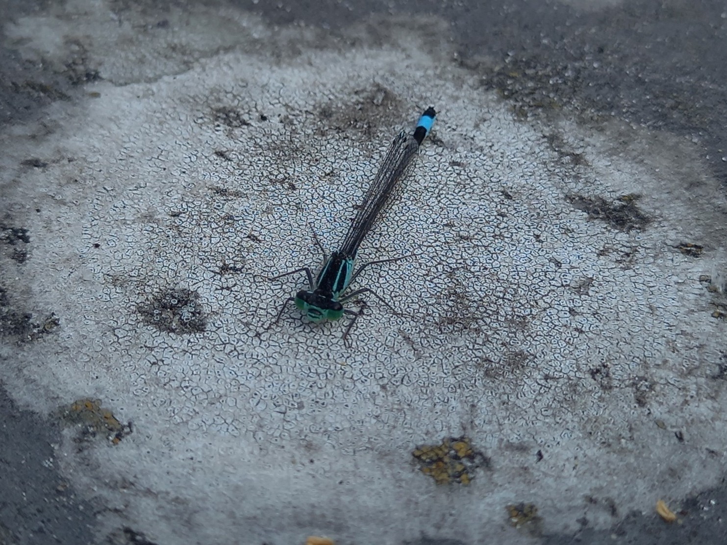 Tijdens de libellenexcursies valt het aantal soorten wat tegen. Veel libellen zitten in de luwte van struiken en bomen, uit de wind, die vrij krachtig is. Variabele waterjuffers zitten met vele tientallen langs slootkanten, in bermen en hangend in struiken. Ook lantaarntjes zijn vrij algemeen vertegenwoordigd. Wat betreft grotere libellen zien we een enkele gewone oeverlibel en meerdere vroege glazenmakers rondvliegen.