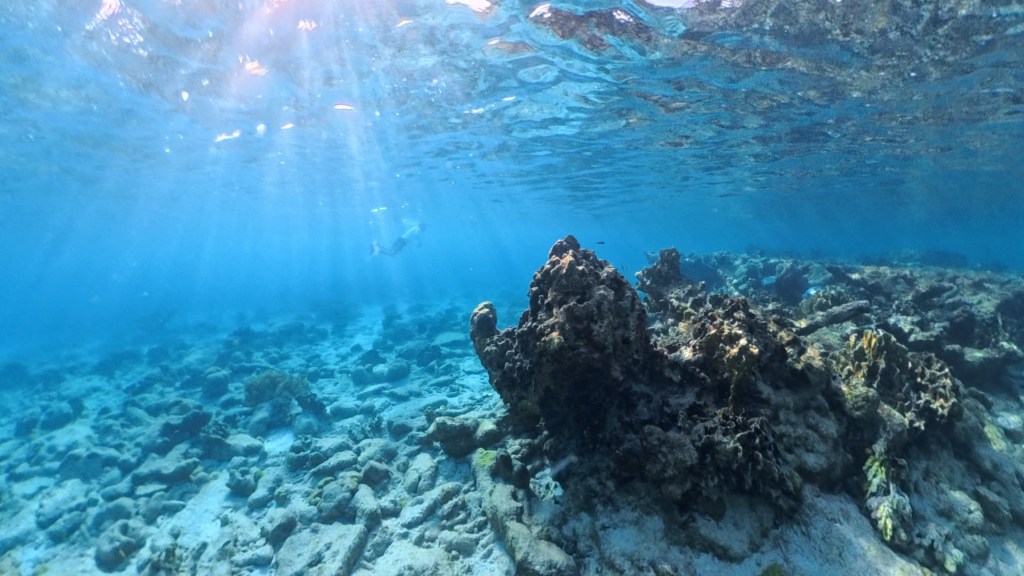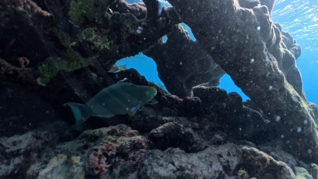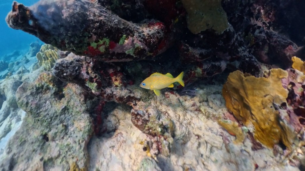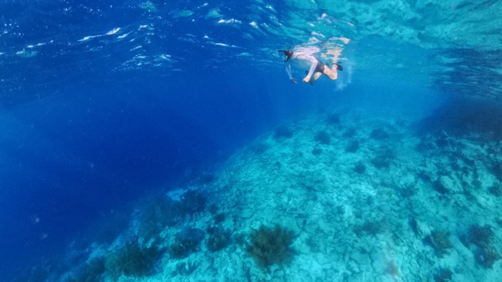 Na weer een goede nachtrust staan we mooi tijd op. Het is weer fijn wakker worden met een zingende naaktoogduif, tropische spotlijster, witoogspotlijster en suikerdiefjes die alweer druk in de weer zijn. Voor mij weer de nodige dosis cafeïne, met een banaan en wat boterhammen. We hebben weer zin om veel te doen vandaag, maar merken tegelijkertijd dat we ons niet te druk moeten maken. We gaan eerst een duik nemen en snorkelen bij Oil Slick Leap, deze druk bezochte duikspot ligt naast het vakantiecomplex. Het is een fijne plek, we zijn er met twee minuten lopen en je kunt via een trappetje rustig de zee in. Omdat het meteen aan het begin al vrij diep is, kun je ook zonder zorgen vanaf de rotsen het water in springen. Waterschoenen zijn net als bij de meeste duik- en snorkellocaties een must, want je haalt gemakkelijk je voeten open aan de scherpe rotsen.