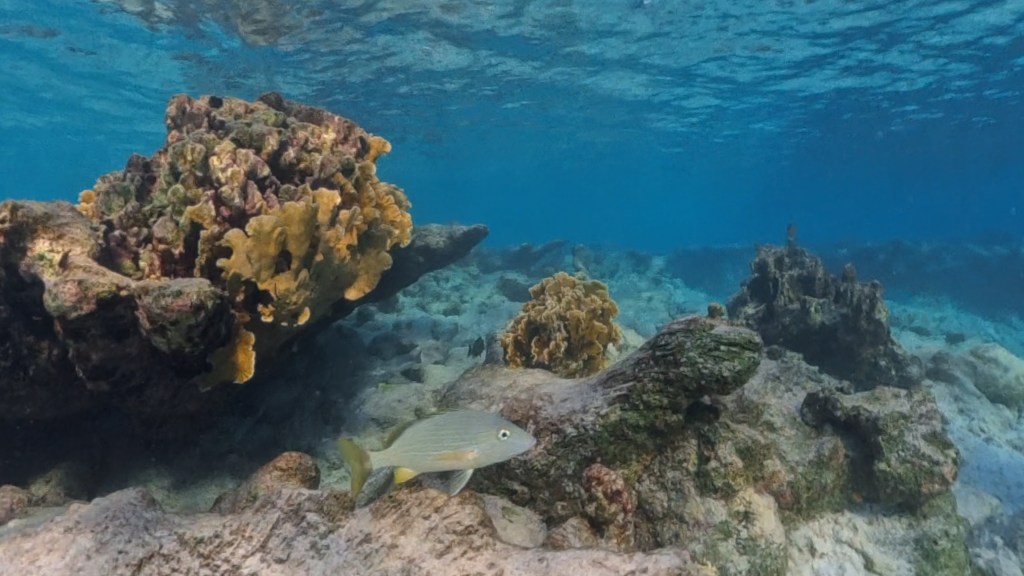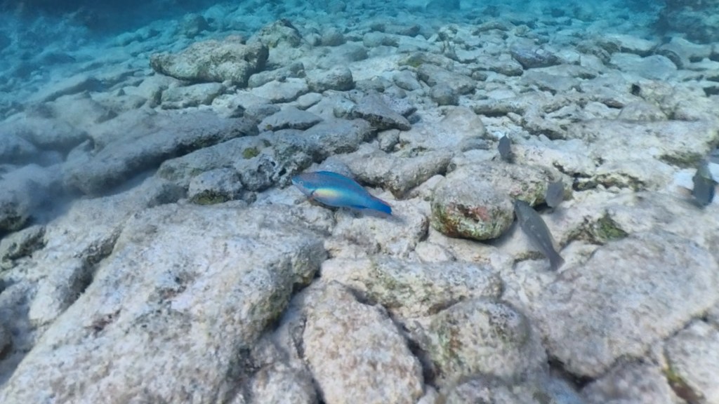 Qua snorkelen hadden we natuurlijk ook een verlanglijstje met soorten die we hoopten te gaan zien: verpleegsterhaai, Caribische rifhaai, grote barracuda, zeeschildpadden en roggen voeren dit verlanglijstje aan. Een walvishaai zou natuurlijk ook waanzinnig zijn, maar deze grootste vis ter wereld is zeldzaam en verblijft deels op grote diepte. Na ruim twee uur zwemmen en snorkelen zijn we toe aan een lunch. Een mooie verkenning van Oil Slick Leap en mijn tweede snorkelervaring. Rond 15:00 ga ik weer een rondje hardlopen, dit keer richting het zuidoosten in plaats van noordwesten, zoals de vorige keer. Een leuke manier om weer een nieuw stukje Bonaire te verkennen. Tijdens dit verkennen stuit ik op Andrea II. Deze droomplek, een strand met stenen en verspreid staande bomen en bosjes, met rondvliegende kolibries, fregatvogels en visarenden, blijkt ook een geliefde plek om te snorkelen. Even later zal blijken waarom. Eenmaal terug in het appartement vertel ik Nico over deze interessante plek.