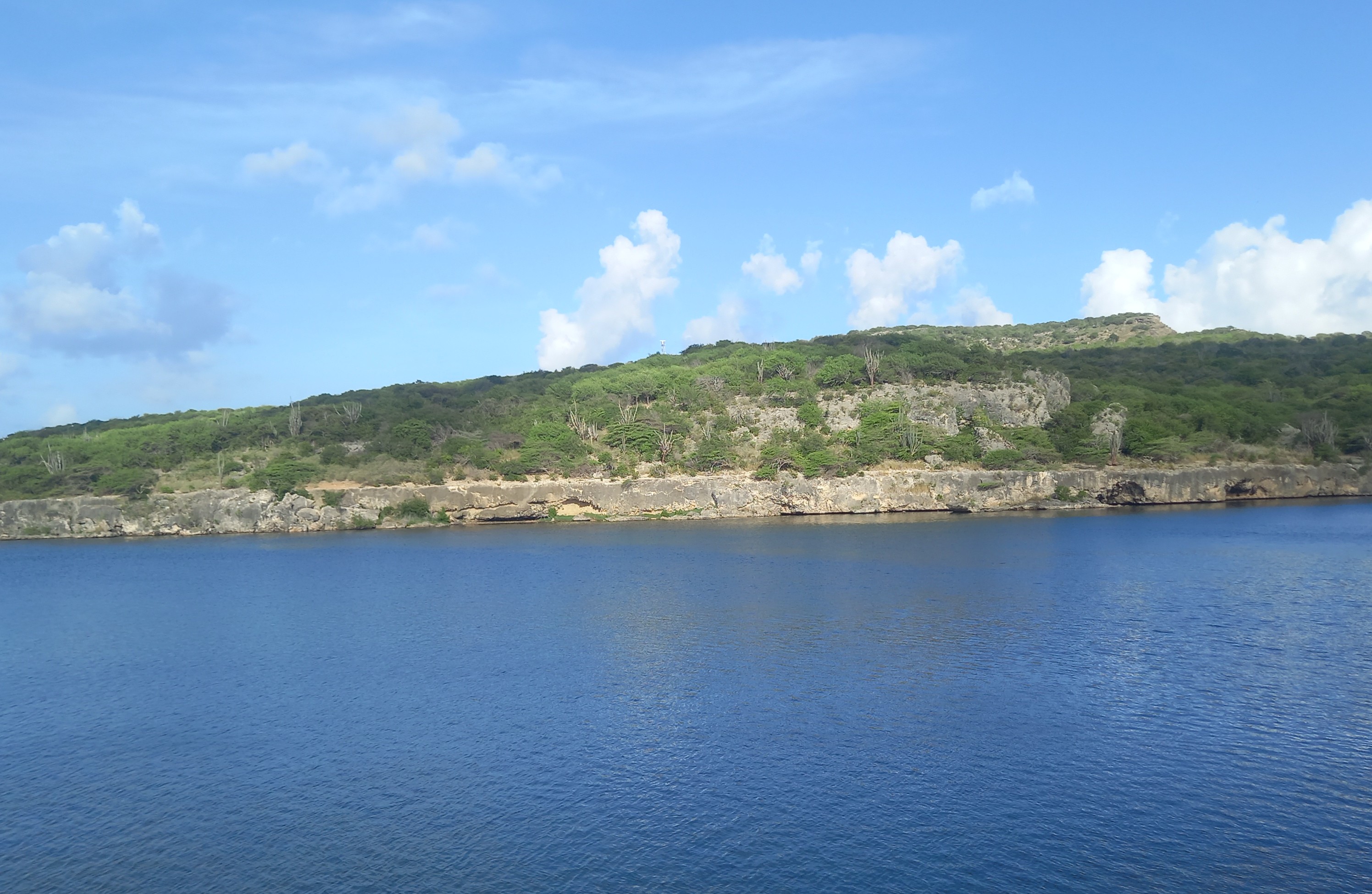 Met de wind in de rug fietsen we via de Queen’s highway richting de noordwestpunt van Bonaire. Om de hitte enigszins voor te zijn, zijn we 07:30 op de fiets gestapt. Onderweg stoppen we af en toe, want vogels vragen onze aandacht. Tropische spotlijsters zingen vanuit alle hoeken, grijze koningstiran mooi in de top van een cactus. Kuifcaracara overvliegend. Langs de kust een Amerikaanse goudplevier. Op het moment dat ik deze steltloper wil fotograferen, vliegt deze op. Enkele bruine pelikanen houden ons in de gaten, maar laten zich wat beter bekijken dan de plevier. Een groepje koningssterns vliegt strak door richting het noordwesten. Een prachtig gezicht zo over de blinkende zee.