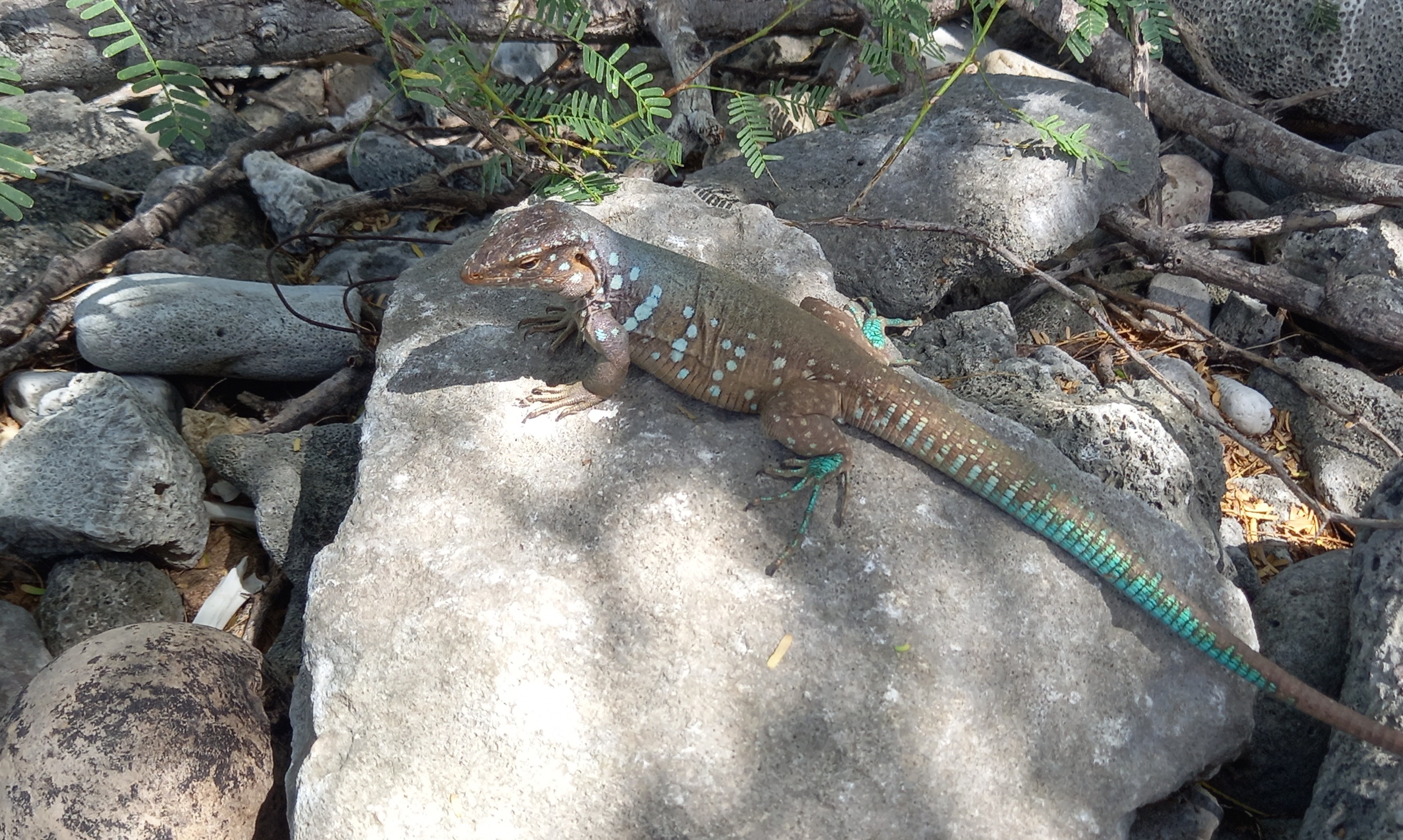 Eenmaal in de schaduw nemen we pauze en eten en drinken wat. We zijn gearriveerd bij Echo Dos Pos Conservation Centre. Op deze plek worden onder andere geelvleugelamazone’s opgevangen die illegaal in het wild zijn gevangen voor handel als huisdier. Door deze stroperij zijn de papegaaien, die ook bekend staan als Lora’s, zeldzaam geworden op Bonaire. Naar schatting komen enkele honderden tot ongeveer 1000 exemplaren nog voor in het wild op Bonaire. Nadat de Lora’s zijn opgevangen worden ze weer vrijgelaten. Andere maatregelen om de papegaaien een toekomst te bieden, is het verbeteren/herstellen en in stand houden van geschikt leefgebied. Natuurorganisaties op het eiland slaan samen met vrijwilligers de handen ineen. Op de plek waar we pauzeren laten musduifjes zich leuk bekijken. De vogels komen regelmatig drinken uit een fontein. De naam musduif is zeer toepasselijk, want het zijn echt kleine duifjes. Het is één van de talrijkste vogels op Bonaire.
