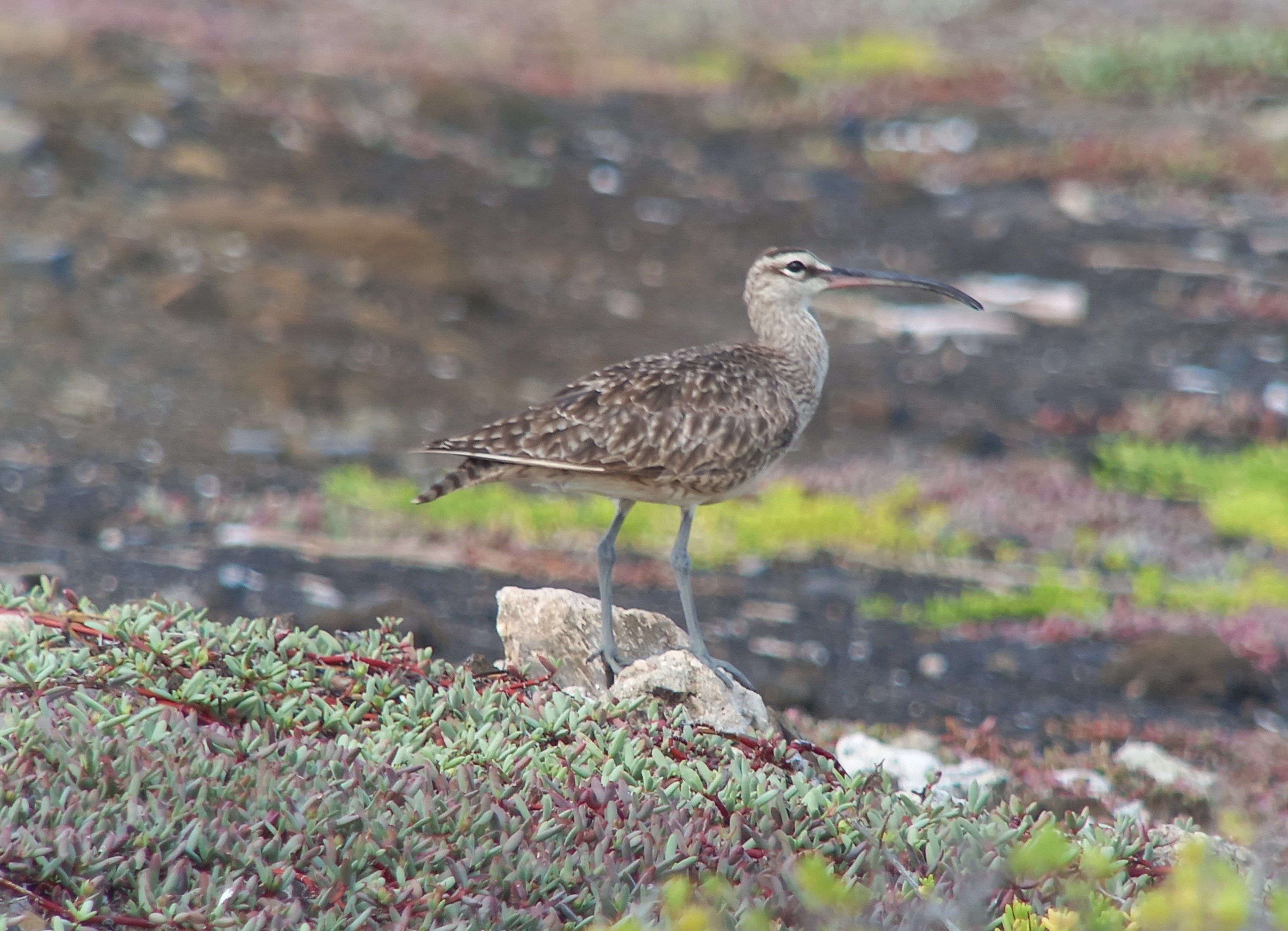 15:00 fietsen we weer richting Gotomeer. Vanaf de zuidkant van het Gotomeer fietsen we via een breed zandpad richting Playa Frans, aan de noordwestkust. Dit zandpad loopt vlak langs de kustlijn en is niet ideaal per fiets. Dit vanwege de vele hobbels. We doen dus weer lekker rustig aan en stoppen zo nu en dan. Nico ziet een vreemde vogel op het hek rondom BOPEC, het plaatselijke olieopslag terrein van Bonaire. Ik heb de vogel ook snel in beeld, maar details zijn lastig te zien door het felle tegenlicht. Het gedrag en silhouet doen denken aan een soort koekoek. Grote kans dat het om een geelsnavelkoekoek gaat, een schaarse doortrekker op Bonaire. We fietsen een stukje door zodat we de vermeende geelsnavelkoekoek met het licht mee kunnen bekijken. Eenmaal met de zon in de rug is meteen duidelijk dat het inderdaad een geelsnavelkoekoek betreft, fraaie soort.